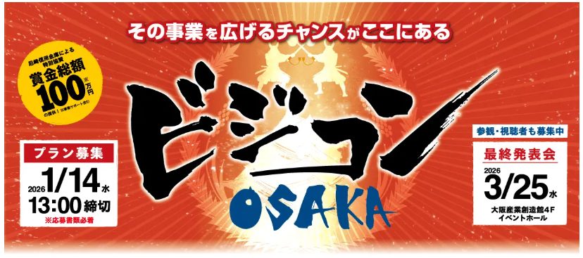 【大阪市内での起業を応援!】ビジコンOSAKA2025参加者募集中。1/14まで【賞金総額100万円】