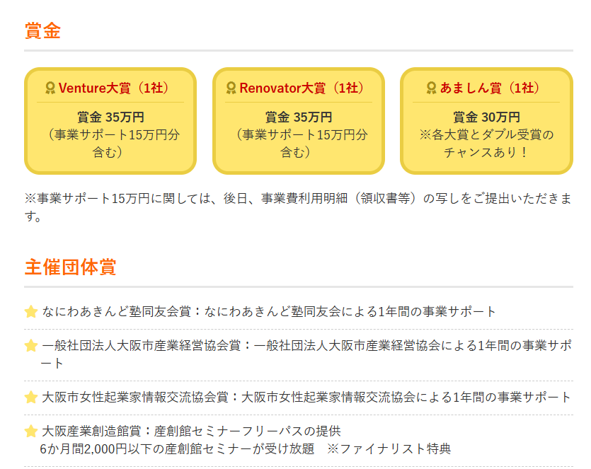 賞金総額は100万円となっており、毎年人気の高いビジネスコンテストです。