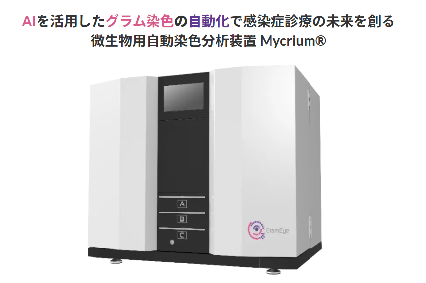 GramEyeは、2025年1月に**グラム染色工程を自動化するAI・ロボティクスソリューション「Mycrium®」**を発売し、臨床現場への導入を開始しました。